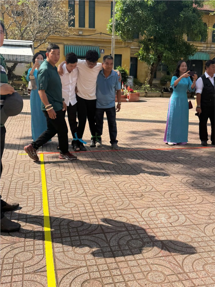 Ngay tại sân trường, không khí càng thêm sôi động với hội thi trò chơi vận động “Ba người bốn chân” giữa các tổ chuyên môn. Khi hiệu lệnh xuất phát vang lên, các đội thi nhanh chóng nhập cuộc với tinh thần hào hứng, những bước chân cố gắng phối hợp nhịp nhàng để cùng nhau tiến về phía trước. Những tiếng cười giòn giã, những tràng cổ vũ nhiệt tình từ đồng nghiệp đã làm cho sân trường thêm náo nhiệt. Không chỉ là một phần thi vận động đơn thuần, hội thi còn mang lại những khoảnh khắc vui vẻ, gần gũi giữa các thành viên trong tập thể nhà trường. Qua từng bước chạy đồng đội, tinh thần hợp tác, sẻ chia và gắn kết được thể hiện rõ nét, góp phần thắt chặt hơn tình cảm giữa các thầy cô trong đại gia đình Hồng Bàng.